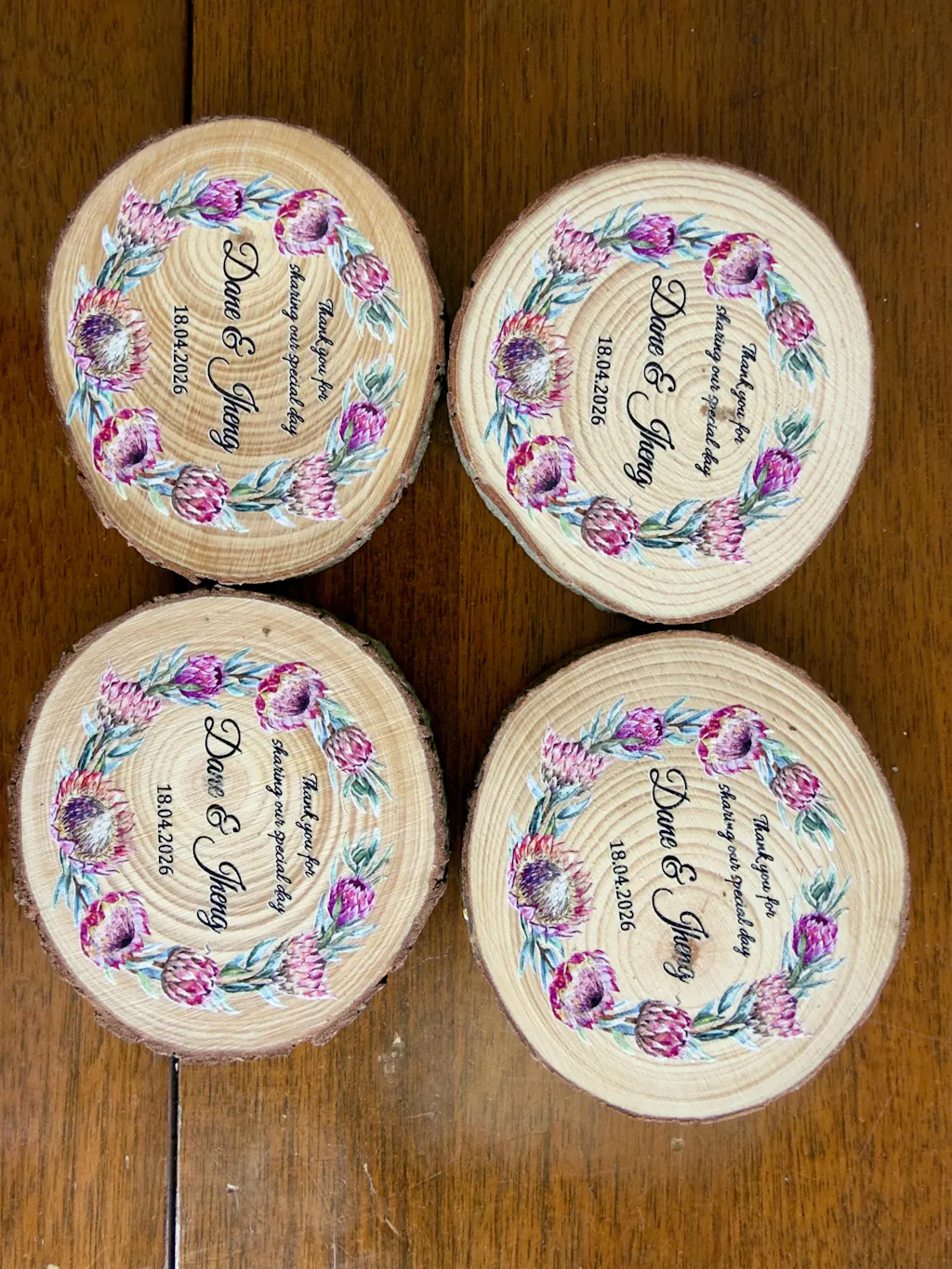 - Once you have placed your order we will send you an email requesting the details to include on your coasters (names, dates etc)